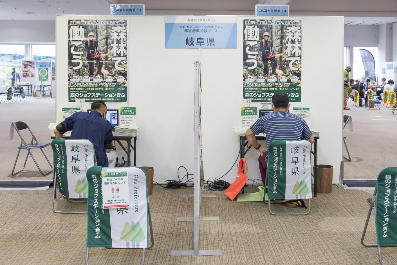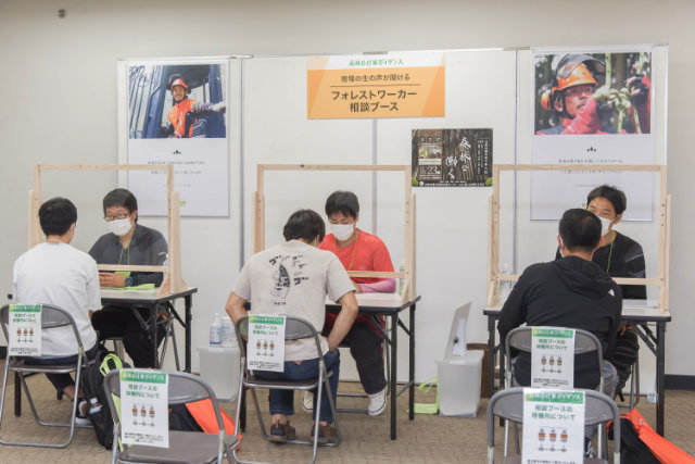 会場内では事前予約で人数が絞られたこともあり、、相談ブースで熱心に話を伺うなど林業就業に向けての積極的な姿が参加者の方からより多く見られました。